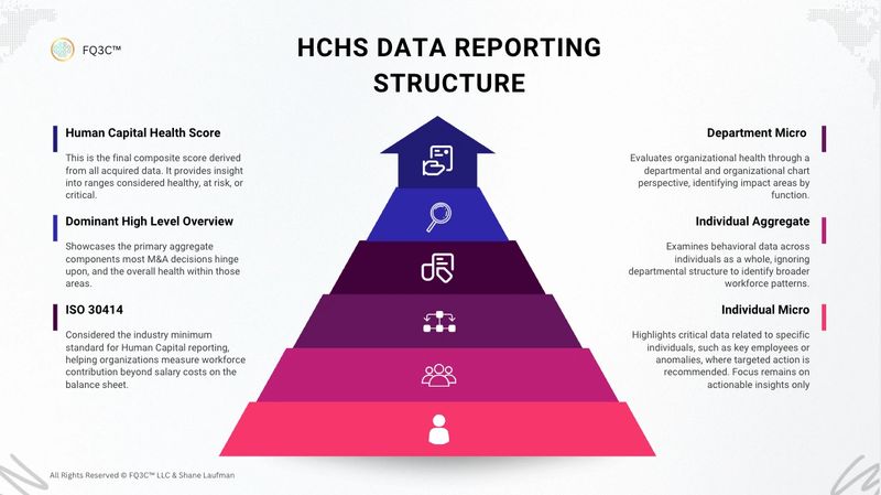 Our company leverages custom software for M&A Business Sellers, Brokers, and buyers to Capture, Track, and Distribute Human Capital Validation, Valuation, and Due-Diligence metrics/data. It also serves as a Marketplace for M&A with the Human Capital Health Report (HCHR) as the flagship product. Through Data collections utilizing non-invasive software we can generate a fully comprehensive HCHR delivered directly to the buyer with a simple click of a button.