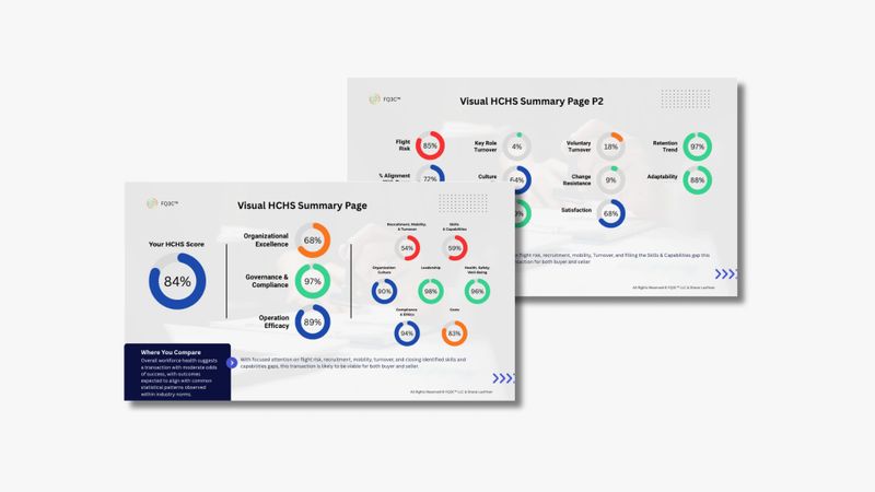 Don't just use the report for the CIM or VDR actively leverage our dashboard insights within your Humanda portal to improve your workforce performance thereby aiding in the increased valuation when the deal closes.